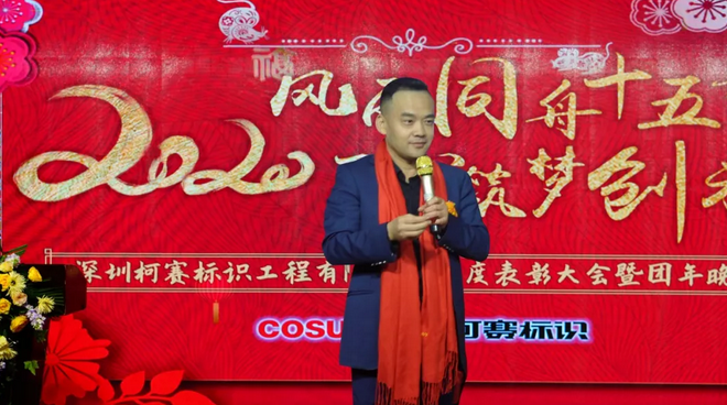 2020年1月11日,深圳柯賽標(biāo)識工程有限公司2019年度表彰大會暨團(tuán)年晚宴、聯(lián)歡會在深圳坪地新瑞昌酒樓成功舉行,本次年會活動以“風(fēng)雨同舟十五載,匠心筑夢創(chuàng)未來”為主題,柯賽標(biāo)識眾多嘉賓朋友、全體員工、員工家屬等300多人歡聚一堂,共同迎接2020新年的到來。