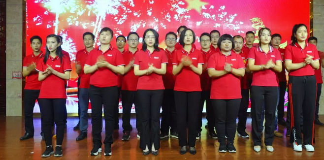 聯(lián)歡會結(jié)尾部門,全場觀眾在管理層代表、員工代表的大合唱節(jié)目的帶領(lǐng)下,全場起立一起歌唱祖國。隨后的團(tuán)年晚宴,大家紛紛舉起酒杯互相祝賀。