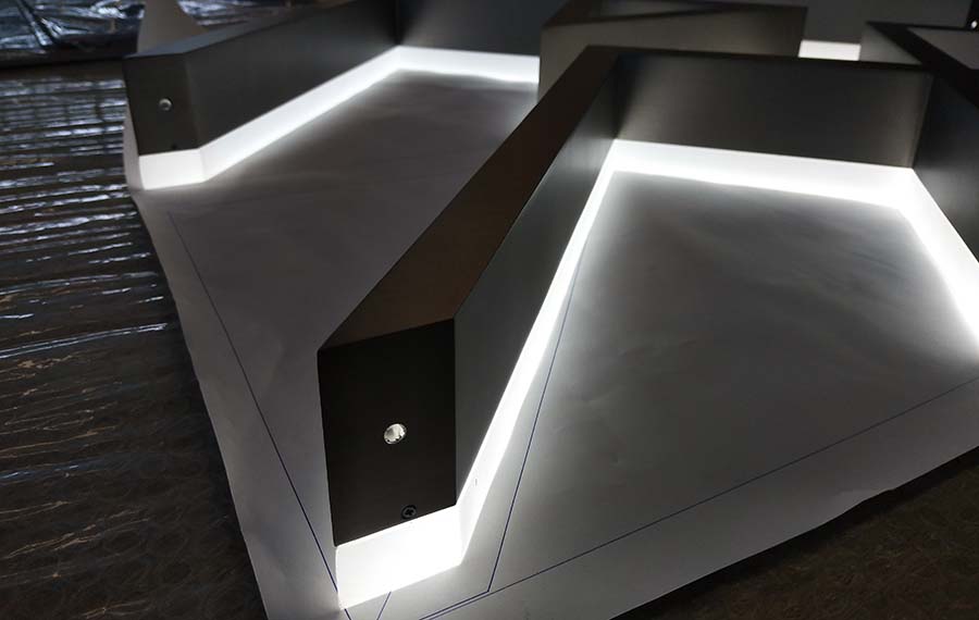LED背發(fā)光字也可以叫做背光字,背發(fā)光字由三部分組成。正面由激光切割,接口平整圓滑,金屬邊開槽處理,由激光焊焊接面板和邊帶。背面水晶板由激光切割,裝入面板中,內(nèi)裝LED燈完成。led背發(fā)光字的特點主要有以下6個: