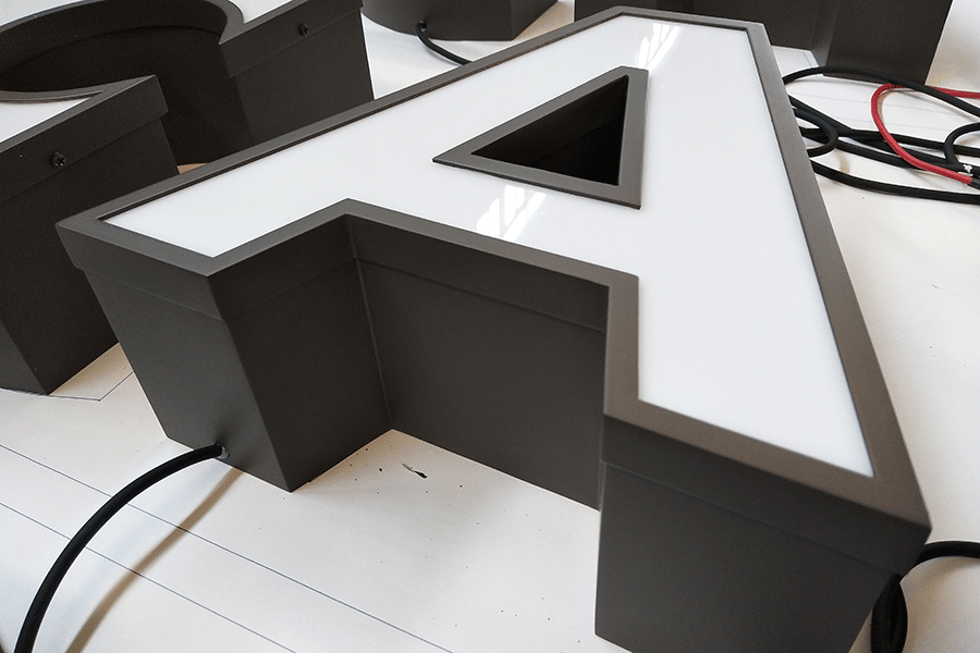 【制作工藝】板材材料選擇:亞克力,開吸塑專用模具。通常尺寸在2.5mx2.5m以內(nèi)的發(fā)光字可使用3mm白亞克力板,采用分段拼接,起鼓高度2.2-3cm。尺寸在2.5mx2.5m以上的發(fā)光字建議使用5mm厚亞克力板,起鼓高度2-3cm。