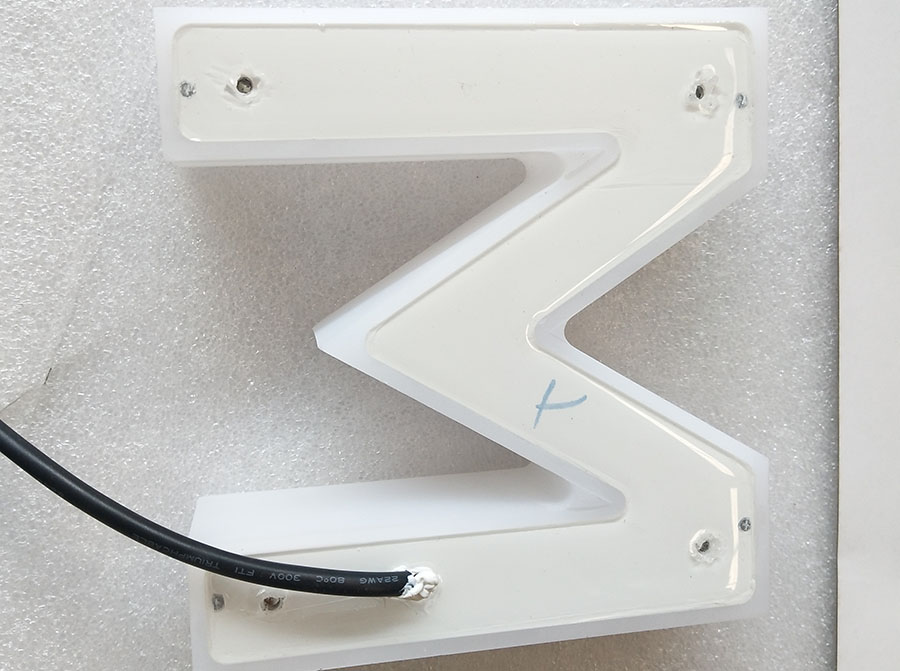 3、耐候性能強:迷你發(fā)光字接口全用有機膠水和502膠水粘合、密封,具有非常優(yōu)秀的防水性、抗風性,且高分子亞克力具有非常強的抗腐蝕性和抗氧化性,因此適合安裝于各種惡劣環(huán)境。